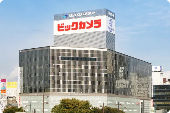 ビックカメラ、ダイワロイネットホテル、飲食店などが入居する複合型ビル